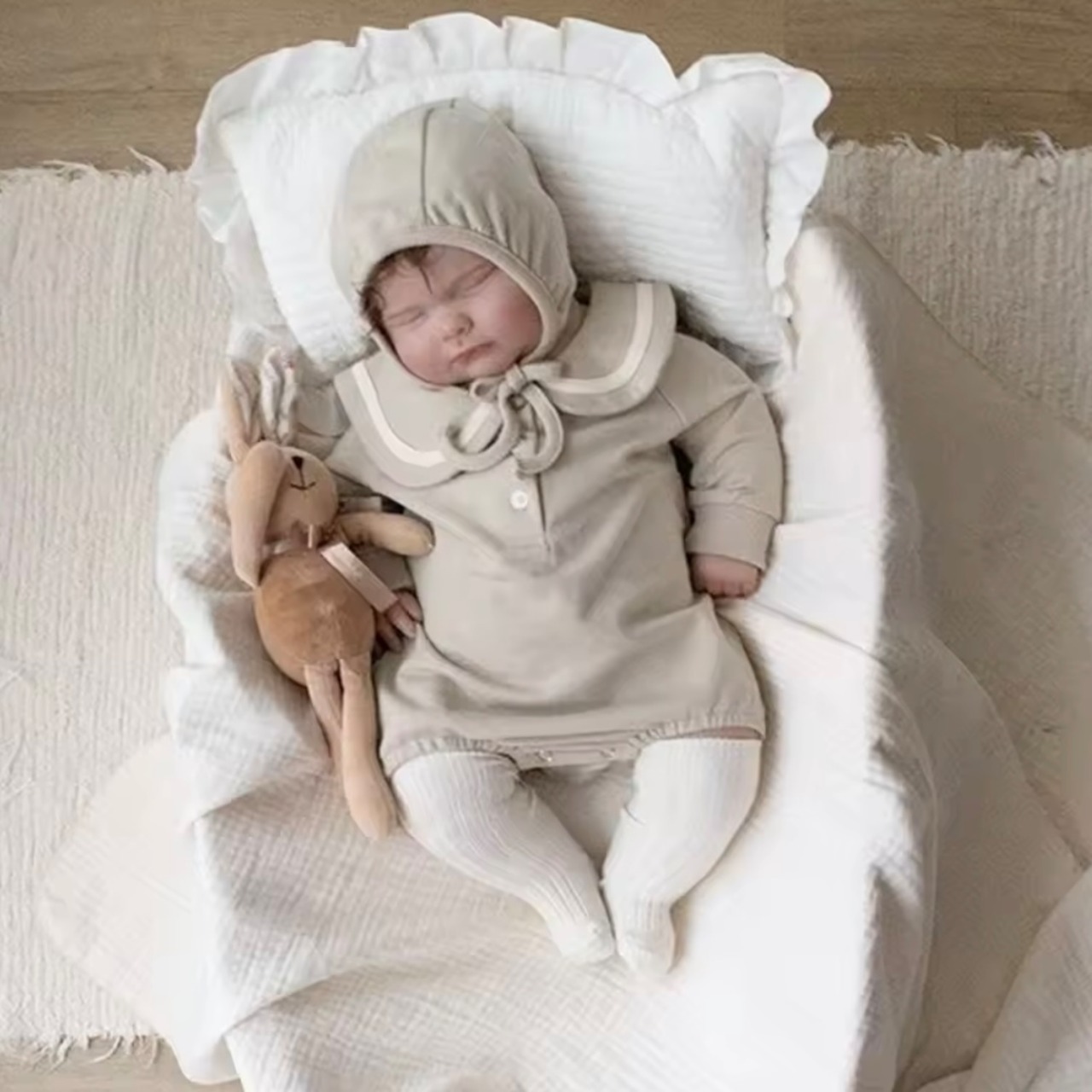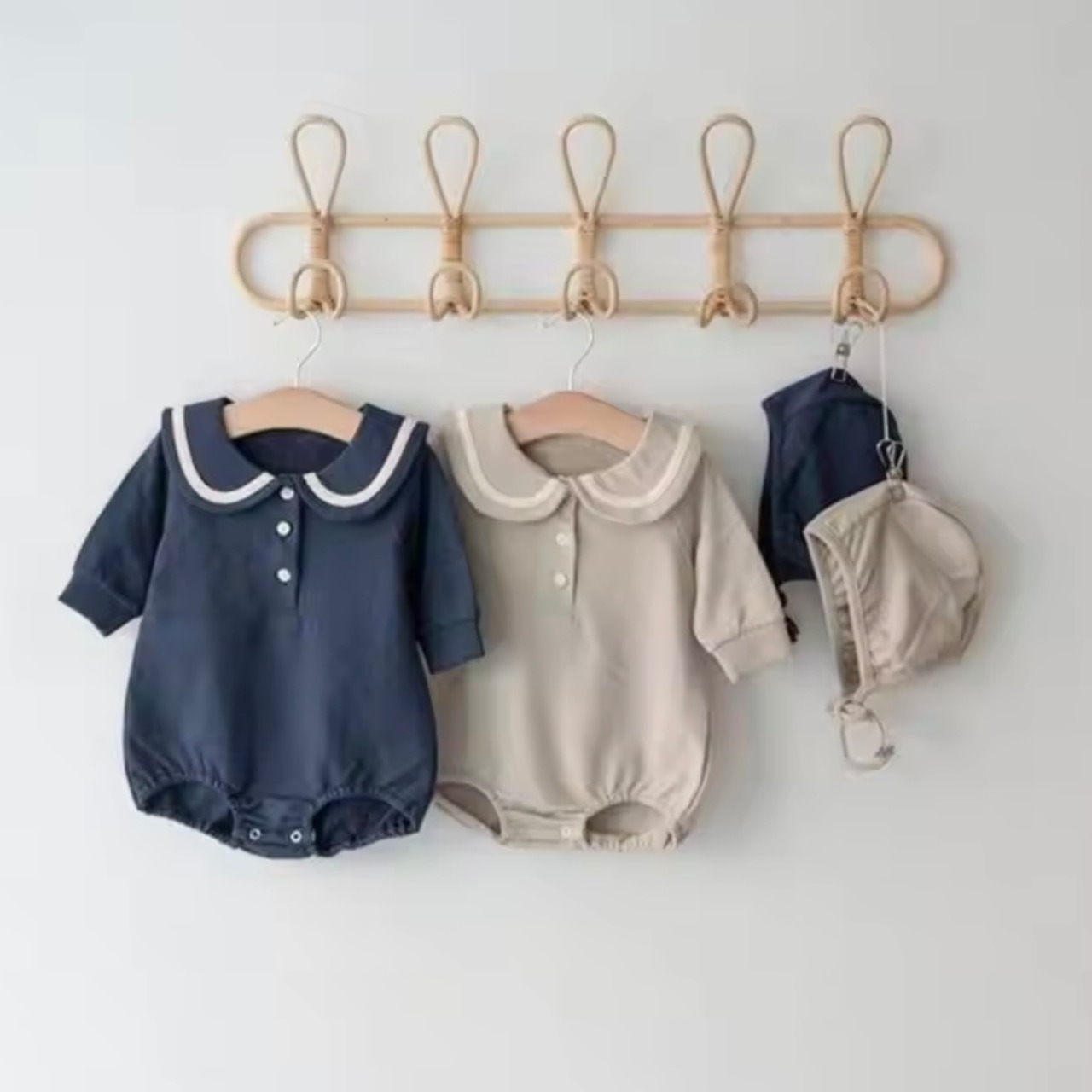 セーラー襟ロンパース&ボンネット 65-90